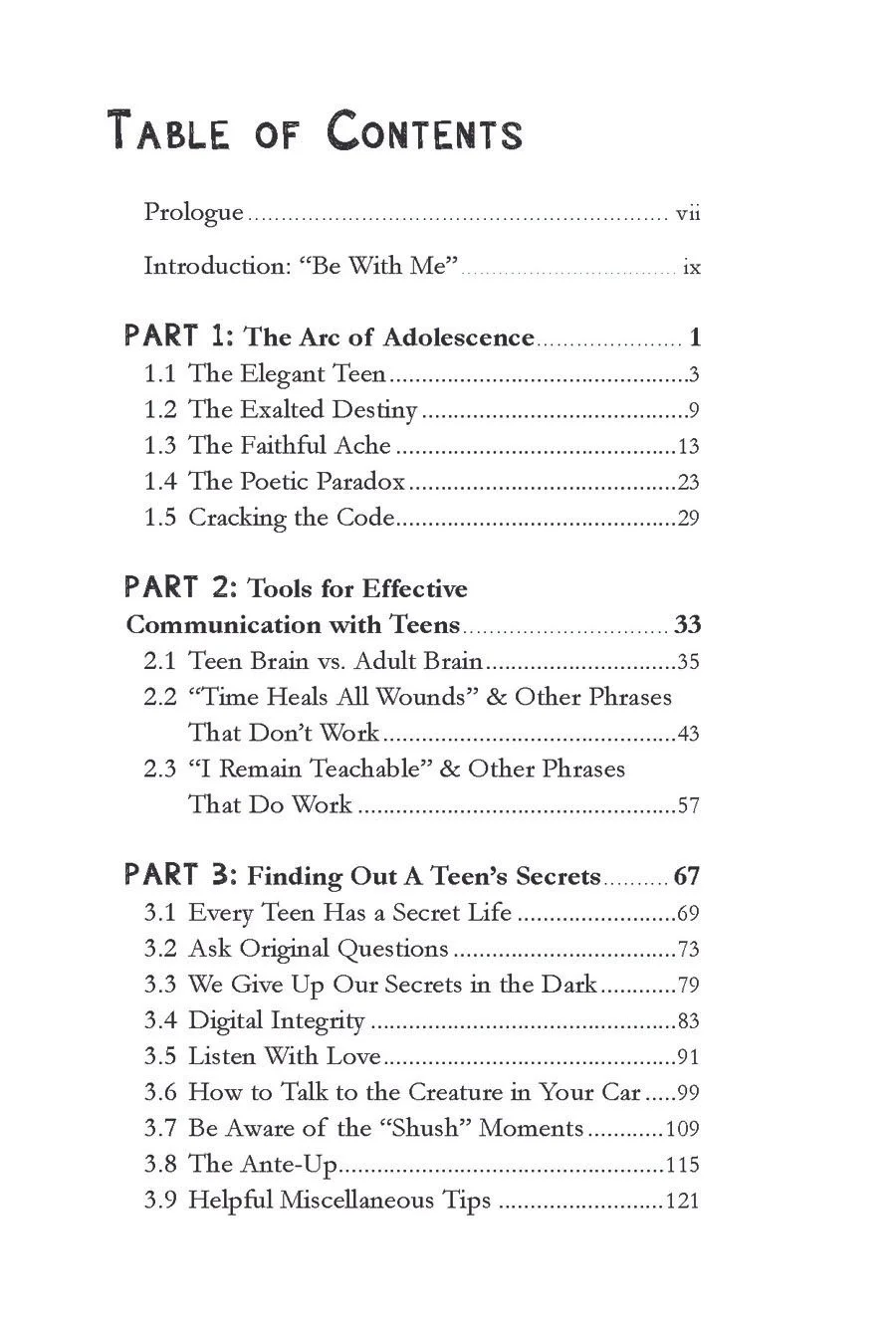 Use this book to validate what’s already working in your relationship with your teen or as a manual for communicating with the Post-millennial creature in the back seat of your car. Most of all let it be a gentle reminder what every teen wants more than anything else: the tender presence of loving parents and permission to be who they are becoming.