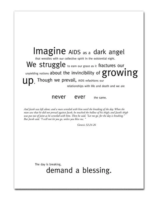 Teenagers are the overlooked heroes in the fight against AIDS – young soldiers of survival in a common battle, defending their right to believe in life. These are their stories and poems. These are their questions and hopes. This is their voice. As one teen puts it, “We need to feel the value of our own lives.” In the words of another, “If my friend had AIDS – no cure, she’d have me, without fail.” And still another, “Dear HIV, some of us will use you as an excuse to fly!”